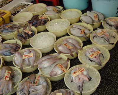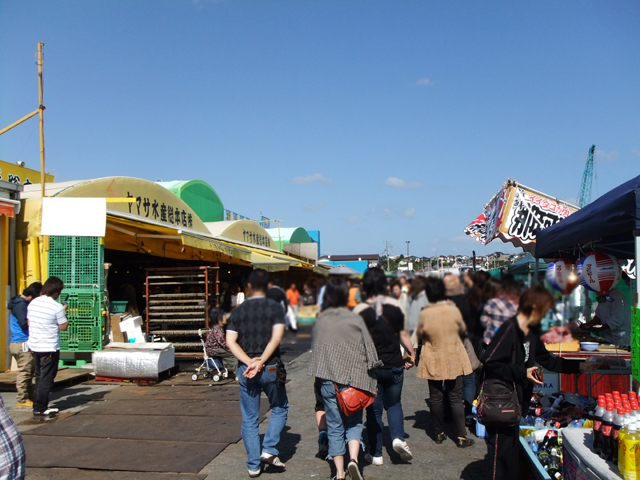 当時のホームページには「魚市場です。お昼のお魚と、お土産を目当てにやってきました。お昼は構内に「回転寿司屋」が何件もあり、値段はやすいし、ネタは新鮮でした。満足でした。」と紹介していました。
